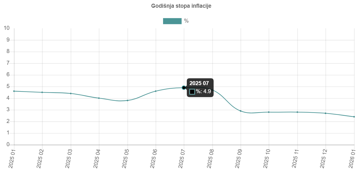 Prošle godine međugodišnja inflacija je bila najviša u julu i iznosila je 4,9 odsto.