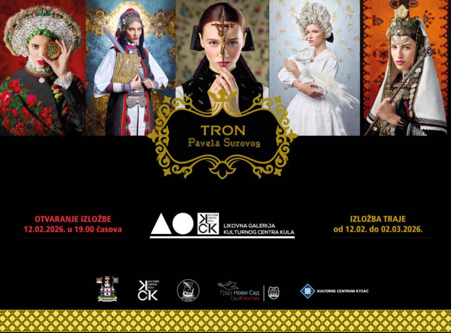 U Likovnoj galeriji Kulturnog centra u Kuli, u četvrtak, 12. februara, sa početkom u 19 časova, biće svečano otvorena izložba fotografija „Tron“, autora Pavela Surovog, jednog od najistaknutijih savremenih umetničkih fotografa i grafičkih dizajnera.
