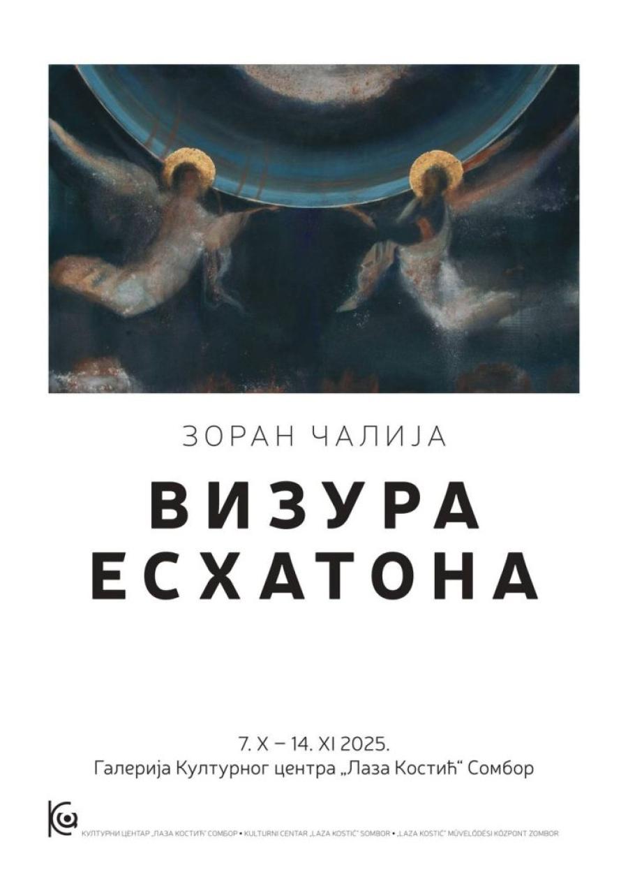 U utorak, 7. oktobra, u Velikoj galeriji Kulturnog centra “Laza Kostić” Sombor, biće upriličeno svečano otvaranje izložbe “Vizura Eshatona”, umetnika Zorana Čalije, s početkom u 19.00 časova.