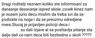 Incident koji je uznemirio roditelje i učenike, a za koji je utvrđeno da nije bilo realne opasnosti.
